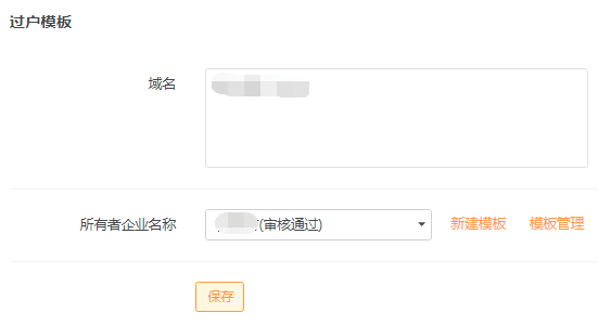 第三步,在域名审核通过后,在未实名列表右侧点击管理-模板过户-选择模板并保存,完成