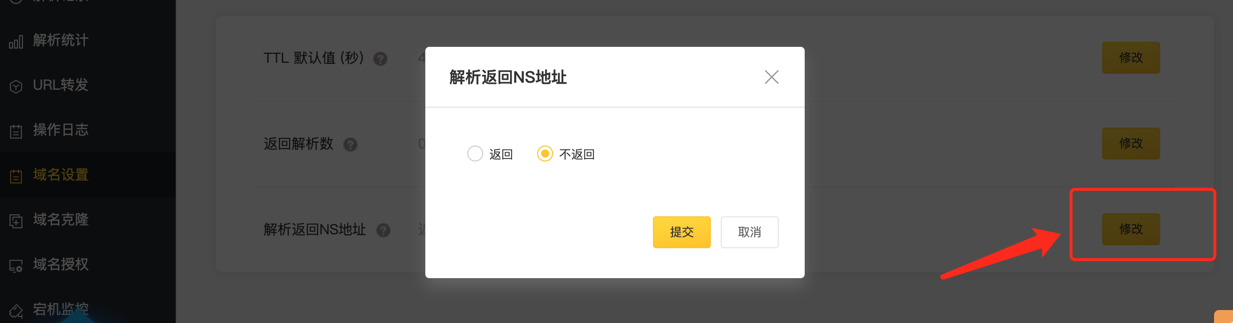 如果不想响应AUTHORITY SECTION,可以通过后台的域名设置进行设置