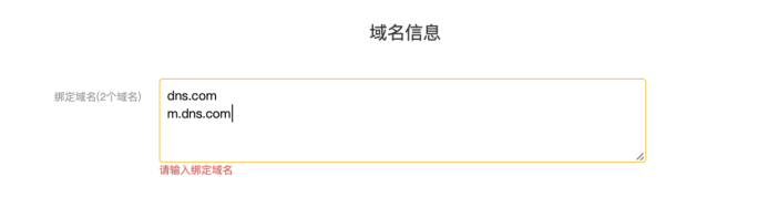 第一部分就是域名信息,需要在下方文本框内写入需要绑定的域名。