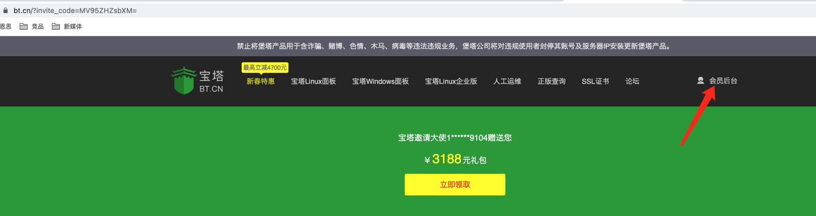 5、授权码激活后会发放对应的产品抵扣券,产品抵扣券需前往登录宝塔面板绑定使用,具体可参考对应的抵扣券使用教程。