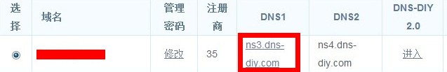 3. 选中您将要修改域名前面的单选框,点击DNS1下的链接;