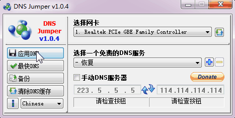 DNS Jumper - 一键快速切换网卡DNS地址免费工具 (一键清空DNS缓存)